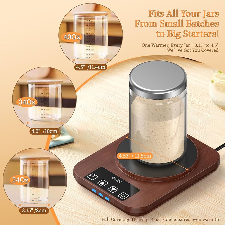 طراحی ضدآب و استفاده از متریال BPA-Free، این محصول را به گزینهای ایمن و مناسب برای استفاده روزمره تبدیل کرده است. این گرمکن برای انواع شیشههای استارتر تا حدود 40 اونس مناسب بوده و علاوه بر استارتر خمیر ترش، برای پروفینگ خمیر نان، خمیر پیتزا و حتی تهیه ماست خانگی نیز کاربرد دارد.