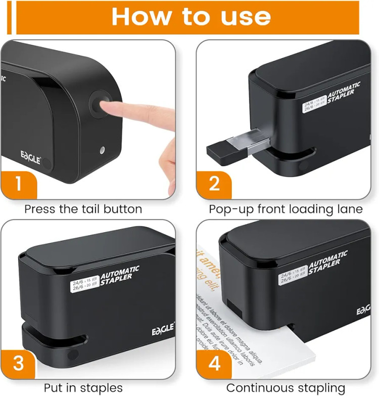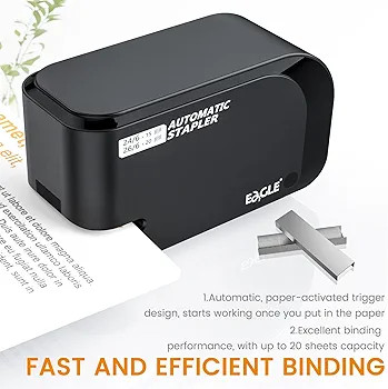 به دنبال یک منگنه برقی اتوماتیک کمصدا، دقیق و مناسب استفاده روزمره در دفتر کار یا منزل هستید، Eagle Electric Stapler Heavy Duty انتخابی هوشمندانه و مقرونبهصرفه است. این منگنه برقی Eagle با طراحی جمعوجور و عملکرد خودکار، تنها با وارد کردن کاغذ، عمل منگنه را در کسری از ثانیه انجام میدهد و تجربهای سریع و بدون دردسر را فراهم میکند.