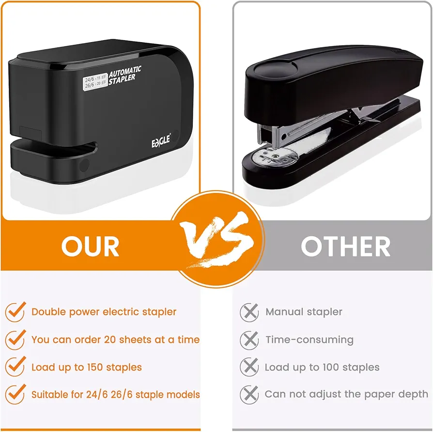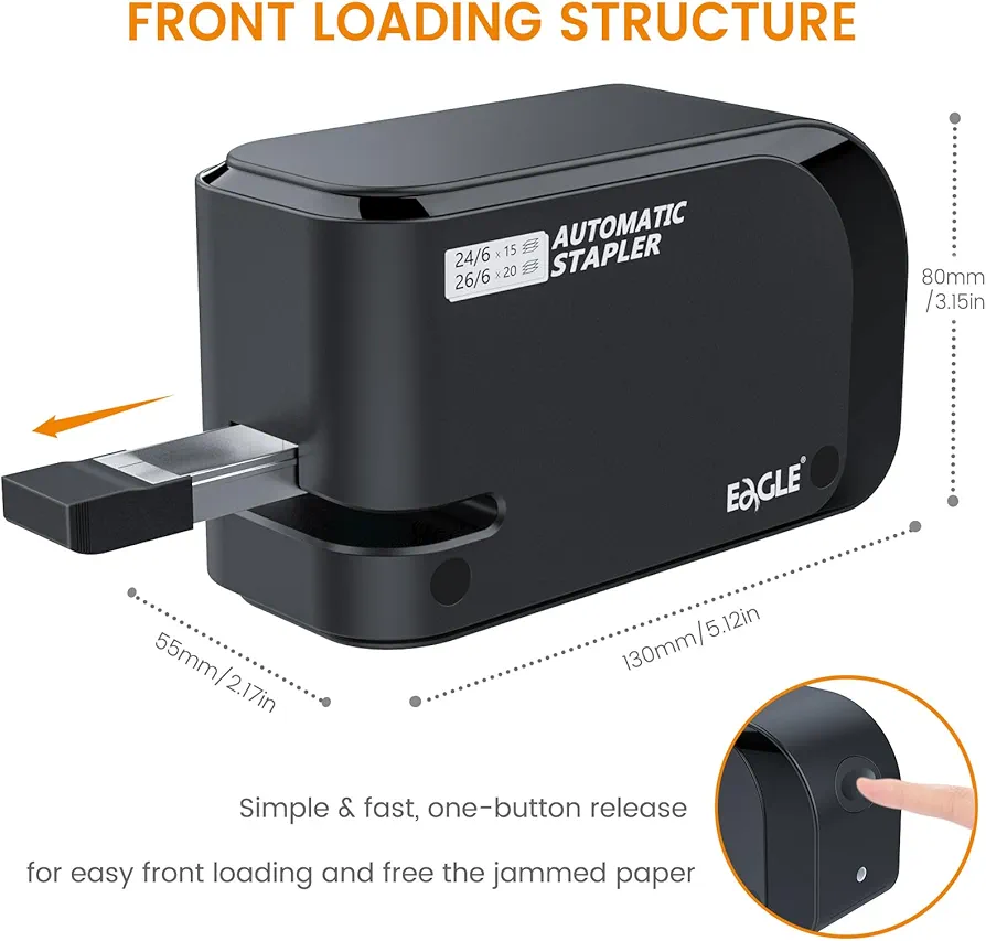 به دنبال یک منگنه برقی اتوماتیک کمصدا، دقیق و مناسب استفاده روزمره در دفتر کار یا منزل هستید، Eagle Electric Stapler Heavy Duty انتخابی هوشمندانه و مقرونبهصرفه است. این منگنه برقی Eagle با طراحی جمعوجور و عملکرد خودکار، تنها با وارد کردن کاغذ، عمل منگنه را در کسری از ثانیه انجام میدهد و تجربهای سریع و بدون دردسر را فراهم میکند.