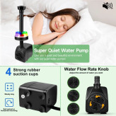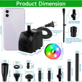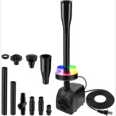 این پمپ علاوه بر عملکرد عالی، به چراغهای LED رنگی (RGB) مجهز شده است که جلوهای چشمنواز به آب میبخشند. نورهای متغیر قرمز، سبز و آبی، در ترکیب با الگوهای مختلف آبپاشی، فضایی آرام و جذاب ایجاد میکنند. وجود سه نازل متفاوت به شما این امکان را میدهد تا نوع پاشش آب را مطابق سلیقه خود تنظیم کنید — از حالت قارچی گرفته تا فواره چند جهته.