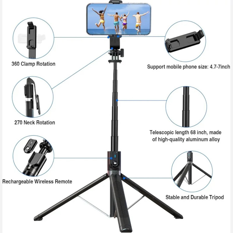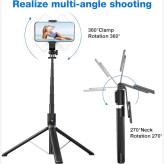 ✨پرسش 1. آیا Lahien P100 با آیفون سازگار است؟ بله، این مونوپاد با تمام مدلهای iPhone و دستگاههای Android سازگار است. 2. آیا میتوان از آن برای GoPro استفاده کرد؟ بله، با آداپتور مخصوص GoPro میتوانید از این پایه برای دوربینهای اکشن نیز استفاده کنید. 3. آیا ریموت بلوتوث قابل شارژ است؟ بله، ریموت از طریق کابل micro USB قابل شارژ بوده و دوام باتری بالایی دارد. 🌟 ویژگیها ✅ طراحی ترکیبی مونوپاد + سهپایه ✅ جنس آلومینیومی سبک و بادوام ✅ اتصال بلوتوث بیسیم با ریموت جداشدنی ✅ چرخش 360 درجه برای تنظیم زاویه عکاسی ✅ پایه ضدلغزش برای پایداری بیشتر ✅ مناسب برای عکاسی، ویدیو، استریم و ولاگ ✅ سازگار با همه گوشیها و دوربینهای کوچک ✅ حمل آسان و و زن سبک (267 گرم) ✅معرفی سهپایه و مونوپاد بلوتوث Lahien P100 یک ابزار هوشمند و چندکاره برای ثبت عکسها و ویدئوهای حرفهای با گوشی موبایل است. این محصول با طراحی آلومینیومی سبک، استحکام بالا و قابلیت تنظیم ارتفاع تا 173 سانتیمتر، یکی از کاملترین ابزارهای عکاسی شخصی محسوب میشود. ترکیب سهپایه پایدار و دسته تلسکوپی قابلتنظیم، Lahien P100 را به انتخابی ایدهآل برای عکاسی سلفی، ضبط ویدیو، استریم زنده، و حتی فیلمبرداری سفر تبدیل کرده است. این محصول مجهز به ریموت بلوتوث بیسیم با برد حدود 10 متر است که به شما امکان میدهد بدون لمس گوشی، تصاویر خود را از فاصله مناسب ثبت کنید. پایه نگهدارنده تلفن با قابلیت چرخش 360 درجه و زاویهپذیری 270 درجهای، انعطاف کامل در تنظیم زاویه دوربین را فراهم میکند تا بتوانید از هر جهت عکس بگیرید. به لطف بدنه آلومینیومی مقاوم در برابر لرزش و زنگزدگی، این مونوپاد دوام بالایی دارد و در عین حال با وزن تنها 267 گرم، بهراحتی در کیف یا کولهپشتی جای میگیرد. همچنین با انواع گوشیهای Android و iPhone و حتی دوربینهای GoPro سازگار است. اگر به دنبال یک سهپایه سلفی سبک، مقاوم و حرفهای برای عکاسی در سفر، تولید محتوای اینستاگرامی یا استریم آنلاین هستید، Lahien P100 یک گزینه ایدهآل با کارایی و قیمت عالی است.