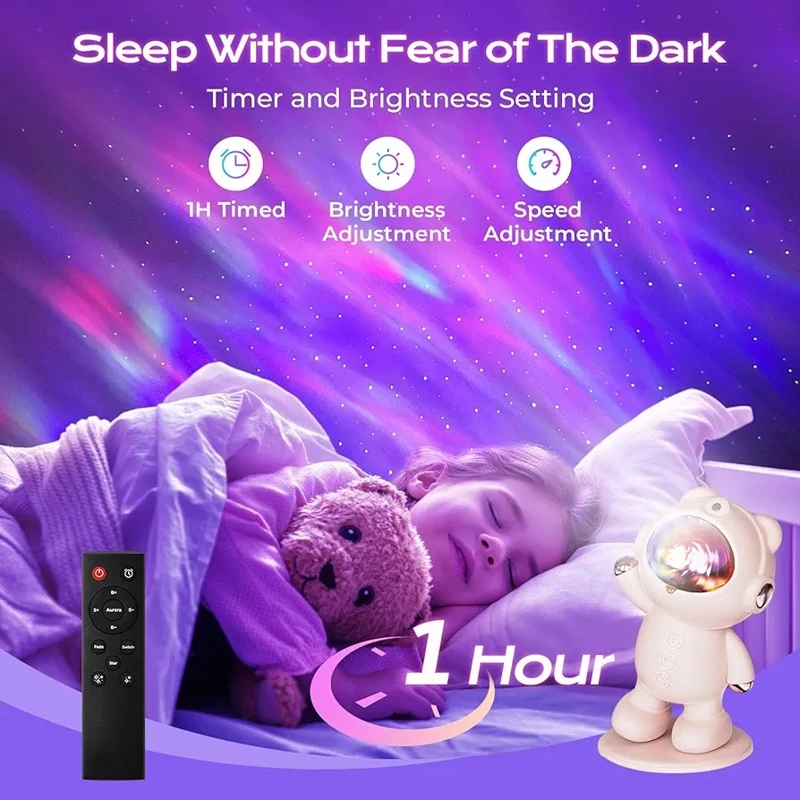 پروژکتور شبانه FULEN Dazzle Bear SP01 یکی از جذابترین و خلاقانهترین چراغهای رومیزی تزئینی است که اتاق شما را به آسمانی پرستاره و رنگارنگ تبدیل میکند. طراحی خاص آن به شکل خرس بامزه با رنگهای پاستلی، نهتنها برای کودکان بلکه برای نوجوانان و بزرگسالانی که به دکور فانتزی علاقه دارند، ایدهآل است. این محصول با استفاده از فناوری LED RGB و الگوی نوردهی چرخشی، جلوهای از شفق قطبی و کهکشان را روی سقف و دیوار ایجاد میکند و حس آرامش و خیالانگیزی به فضا میبخشد.