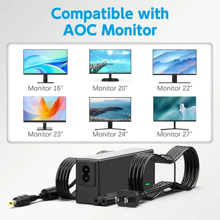🔌 سازگار با مدلهای متعدد AOC – مناسب برای جایگزینی آداپتور اصلی