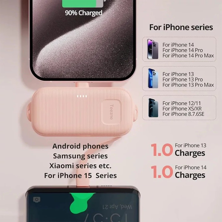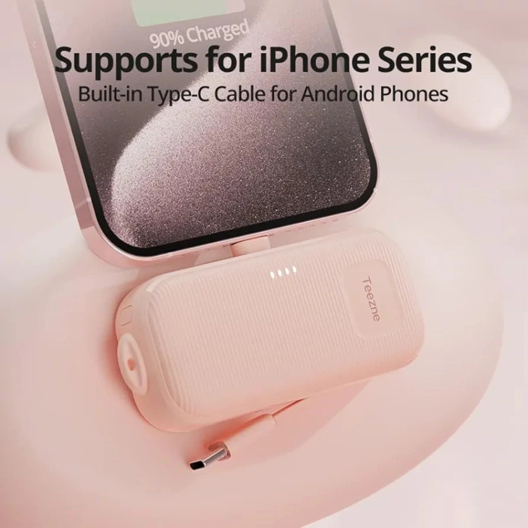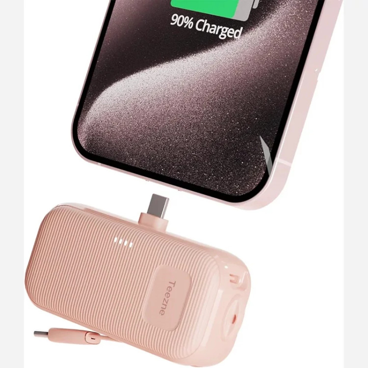 طراحی مینیمال و وزن بسیار کم این محصول باعث میشود بهراحتی در جیب، کیف دستی یا حتی جیب شلوار قرار گیرد. یکی از نقاط قوت Teezne C0505A داشتن کابلهای شارژ داخلی است؛ یعنی بدون نیاز به حمل کابل اضافی میتوانید دستگاه خود را سریع و راحت شارژ کنید. این ویژگی بهخصوص برای سفر، مدرسه، محل کار و موقعیتهایی که دسترسی به پریز برق محدود است، بسیار کاربردی است.