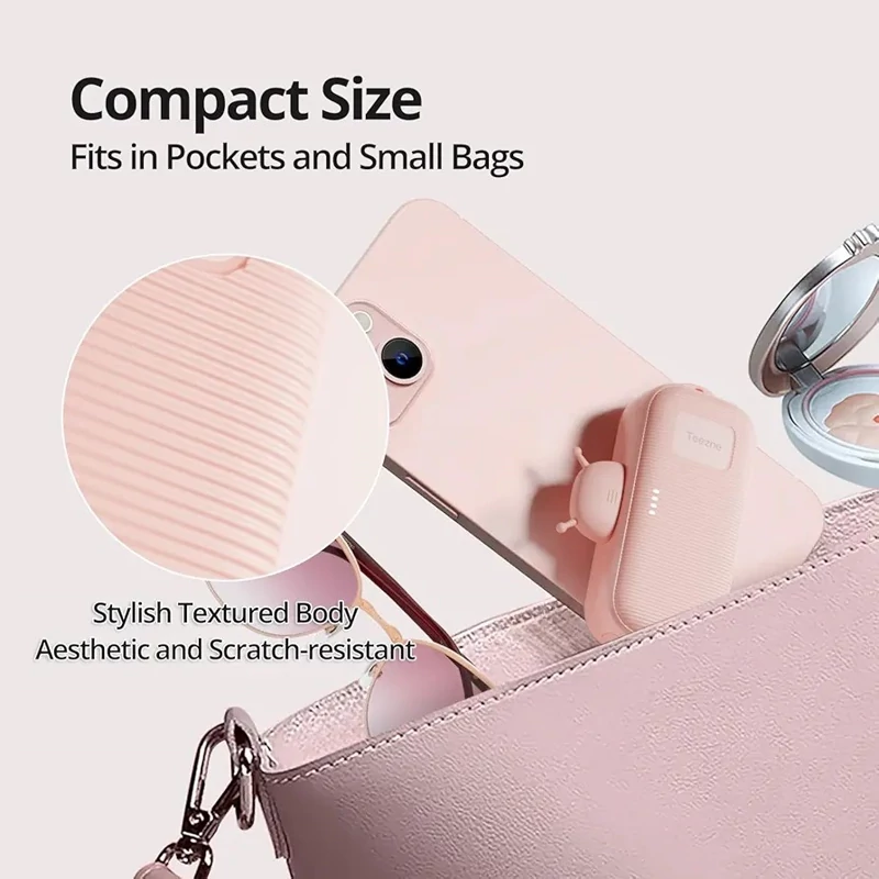 طراحی مینیمال و وزن بسیار کم این محصول باعث میشود بهراحتی در جیب، کیف دستی یا حتی جیب شلوار قرار گیرد. یکی از نقاط قوت Teezne C0505A داشتن کابلهای شارژ داخلی است؛ یعنی بدون نیاز به حمل کابل اضافی میتوانید دستگاه خود را سریع و راحت شارژ کنید. این ویژگی بهخصوص برای سفر، مدرسه، محل کار و موقعیتهایی که دسترسی به پریز برق محدود است، بسیار کاربردی است.