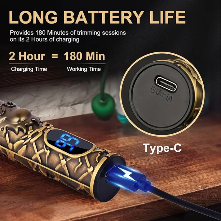 تیغههای استیل ضد زنگ خودتیزشونده این دستگاه اصلاحی دقیق و صاف ارائه میکنند و طول عمر بالایی دارند. باتری قدرتمند آن با شارژ سریع USB-C تنها در ۲ ساعت شارژ شده و تا ۳ ساعت استفاده بیسیم را امکانپذیر میسازد. نمایشگر LED وضعیت باتری و عملکرد دستگاه را به صورت دقیق نشان میدهد و شما را از میزان شارژ باقیمانده آگاه میکند.