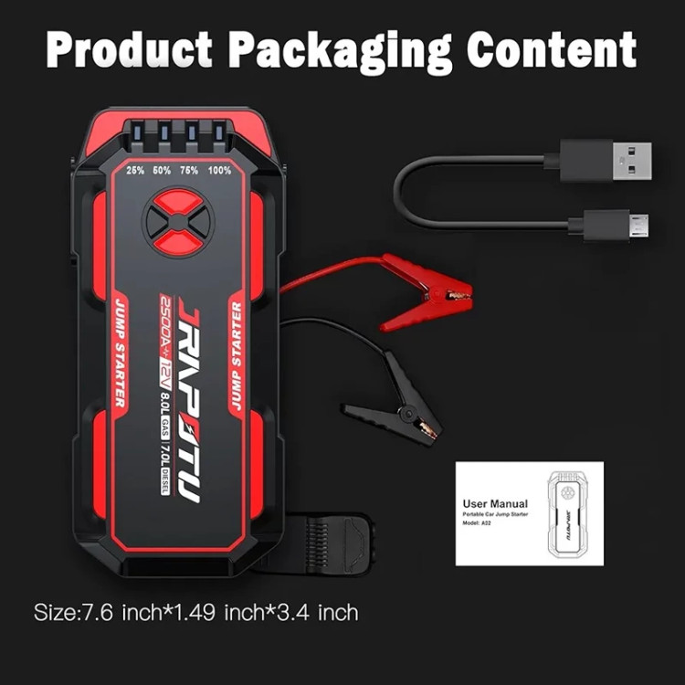 استارتر پرتابل خودرو JRAPOTU مدل A02 یک یار قابلاعتماد برای هر راننده در شرایط اضطراری است. این دستگاه با توان ۲۵۰۰ آمپر پیک و ظرفیت ۱۶۸۰۰ میلیآمپر ساعت، بهراحتی میتواند خودروهای بنزینی تا ۸.۰ لیتر و دیزلی تا ۷.۰ لیتر را در چند ثانیه روشن کند. طراحی فشرده، وزن سبک و قابلیت چندمنظوره بودن، آن را به یکی از بهترین گزینهها برای نگهداری در صندوق خودرو تبدیل کرده است.