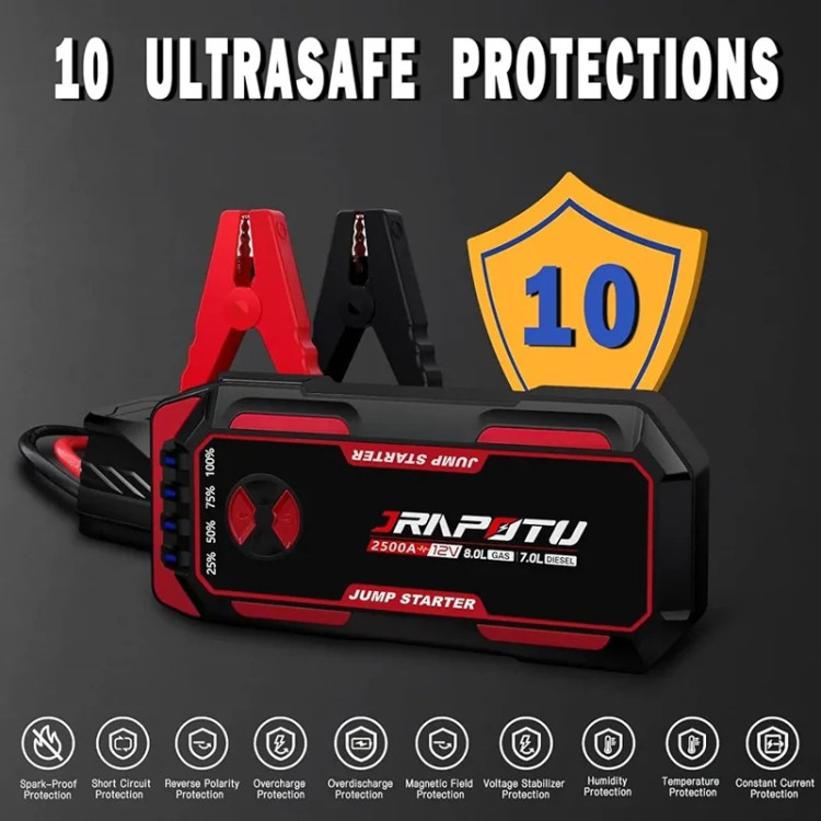 🔋 قدرت بالا با جریان ۲۵۰۰ آمپر برای روشن کردن خودروهای سنگین