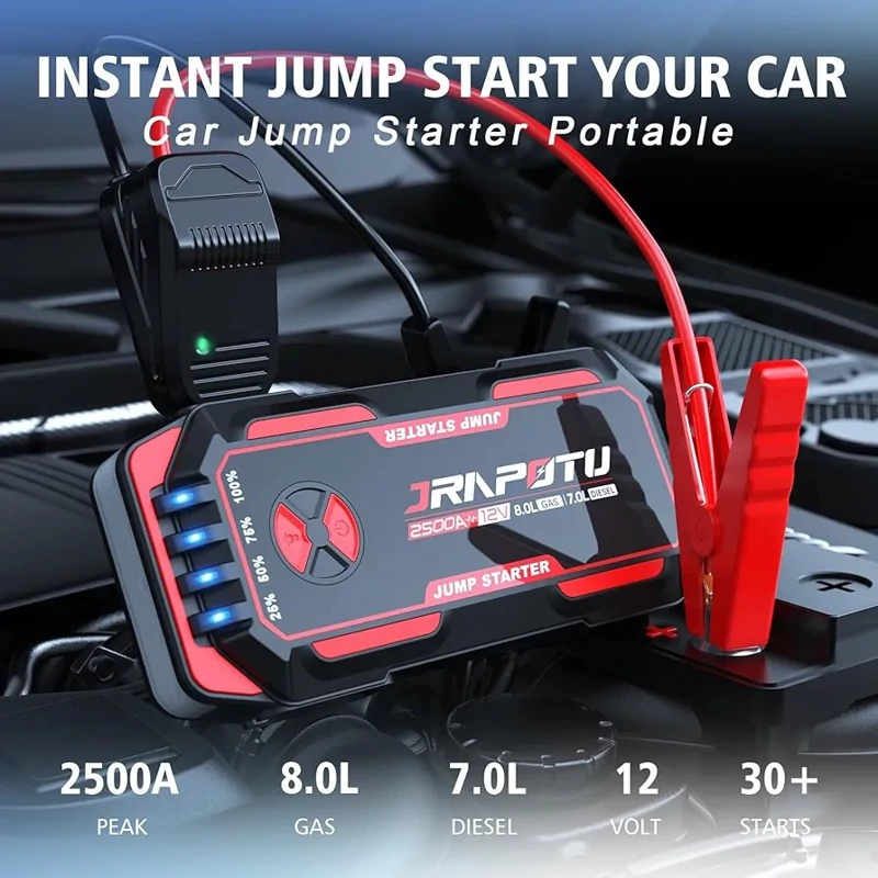 استارتر پرتابل خودرو JRAPOTU مدل A02 یک یار قابلاعتماد برای هر راننده در شرایط اضطراری است. این دستگاه با توان ۲۵۰۰ آمپر پیک و ظرفیت ۱۶۸۰۰ میلیآمپر ساعت، بهراحتی میتواند خودروهای بنزینی تا ۸.۰ لیتر و دیزلی تا ۷.۰ لیتر را در چند ثانیه روشن کند. طراحی فشرده، وزن سبک و قابلیت چندمنظوره بودن، آن را به یکی از بهترین گزینهها برای نگهداری در صندوق خودرو تبدیل کرده است.
