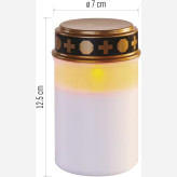زیبا، ایمن و کممصرف برای روشن نگهداشتن محل دفن عزیزان است. این چراغ به رنگ سفید با نوری شبیه به شعله واقعی (نور وینتیج) طراحی شده و به دلیل ساختار LED خود، نه تنها امکان خاموش شدن زودهنگام ندارد، بلکه در برابر وزش باد نیز خاموش نمیشود — برخلاف شمعهای سنتی.