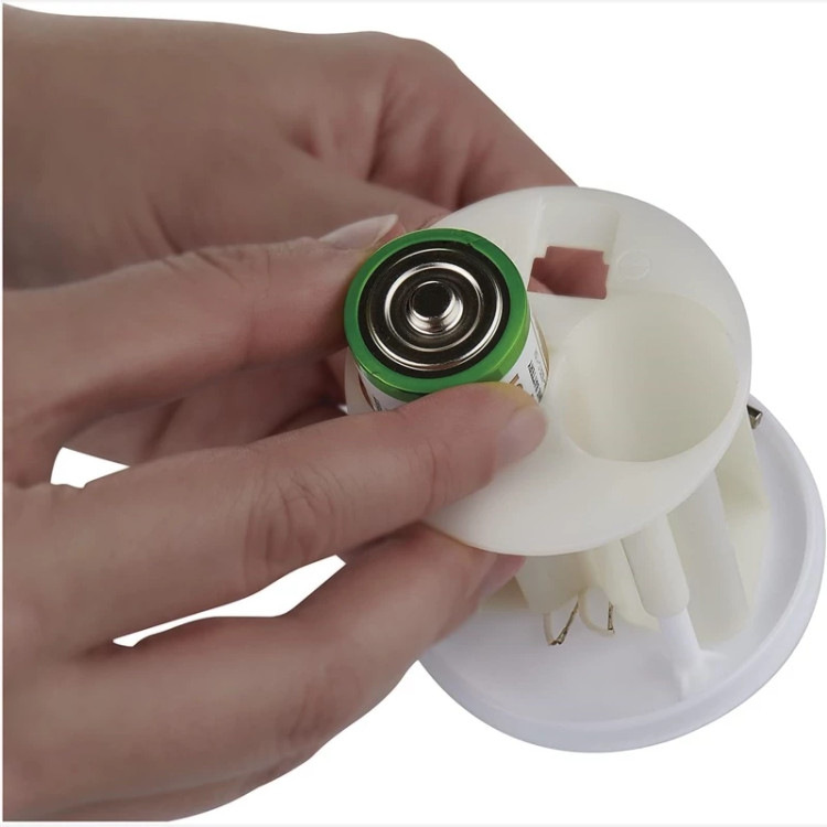 این چراغ از دو باتری نوع C تغذیه میشود که به راحتی در بازار یافت میشوند.